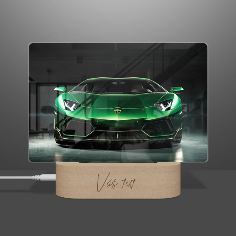 Součástí balení je akrylové sklo dle výběru, dřevěný RGB LED stojánek a napájecí USB kabel.