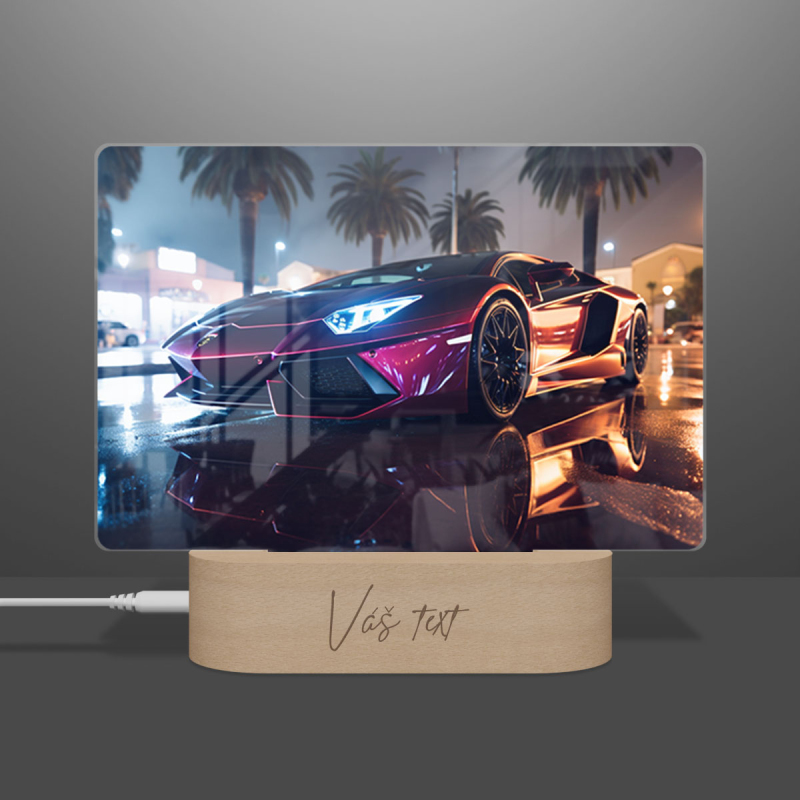 Součástí balení je akrylové sklo dle výběru, dřevěný RGB LED stojánek a napájecí USB kabel.