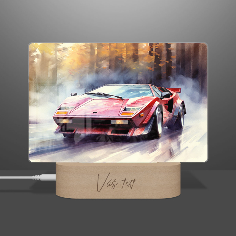 Součástí balení je akrylové sklo dle výběru, dřevěný RGB LED stojánek a napájecí USB kabel.