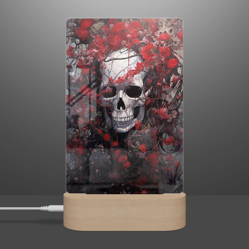 Součástí balení je akrylové sklo dle výběru, dřevěný RGB LED stojánek a napájecí USB kabel.