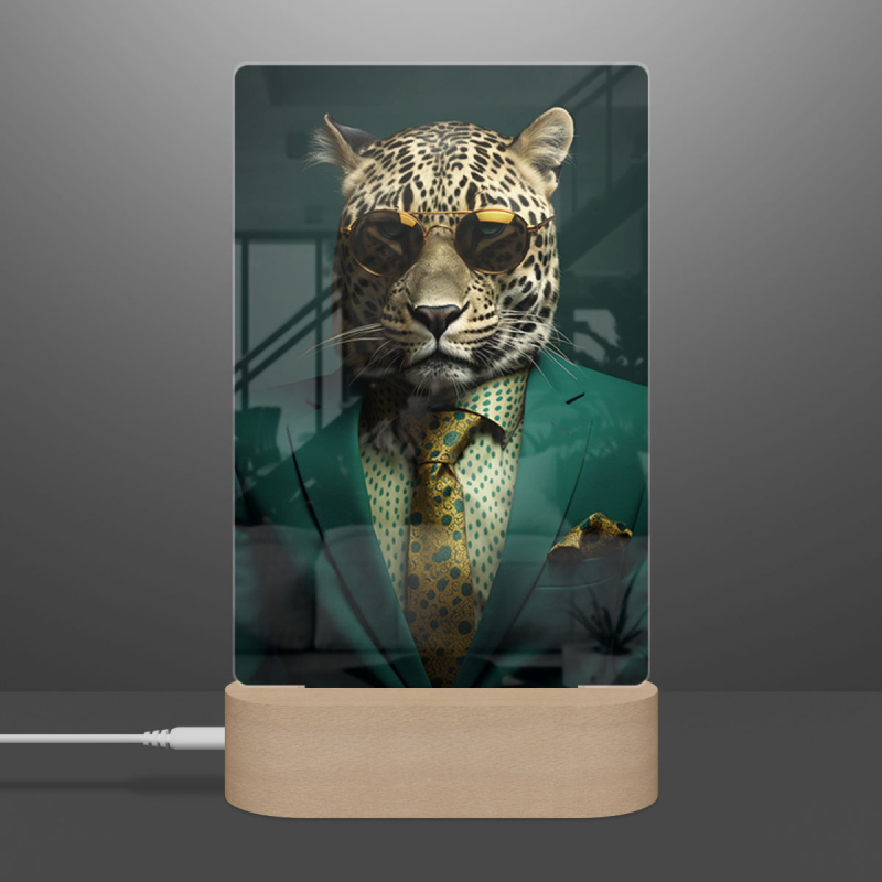 Součástí balení je akrylové sklo dle výběru, dřevěný RGB LED stojánek a napájecí USB kabel.