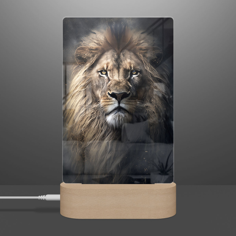 Součástí balení je akrylové sklo dle výběru, dřevěný RGB LED stojánek a napájecí USB kabel.