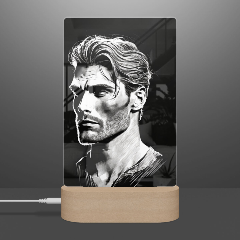Součástí balení je akrylové sklo dle výběru, dřevěný RGB LED stojánek a napájecí USB kabel.