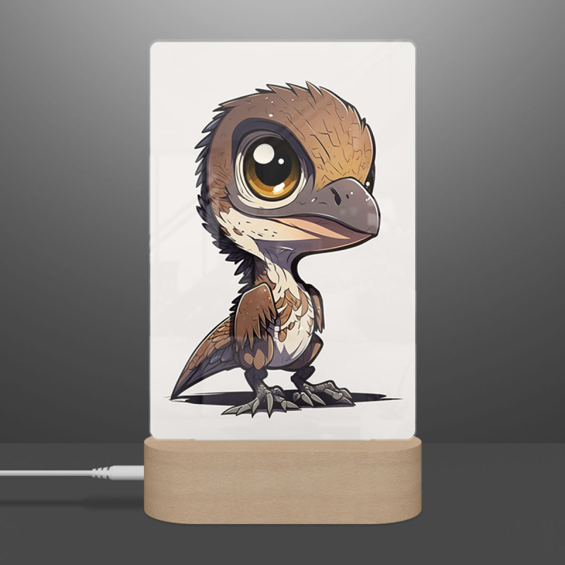Součástí balení je akrylové sklo dle výběru, dřevěný RGB LED stojánek a napájecí USB kabel.