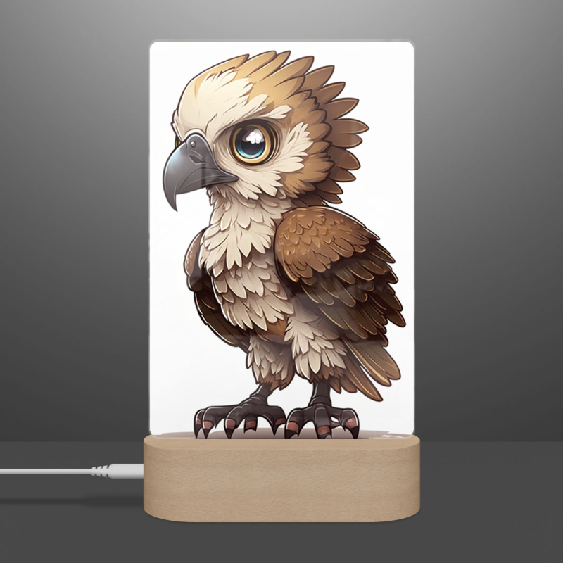 Součástí balení je akrylové sklo dle výběru, dřevěný RGB LED stojánek a napájecí USB kabel.