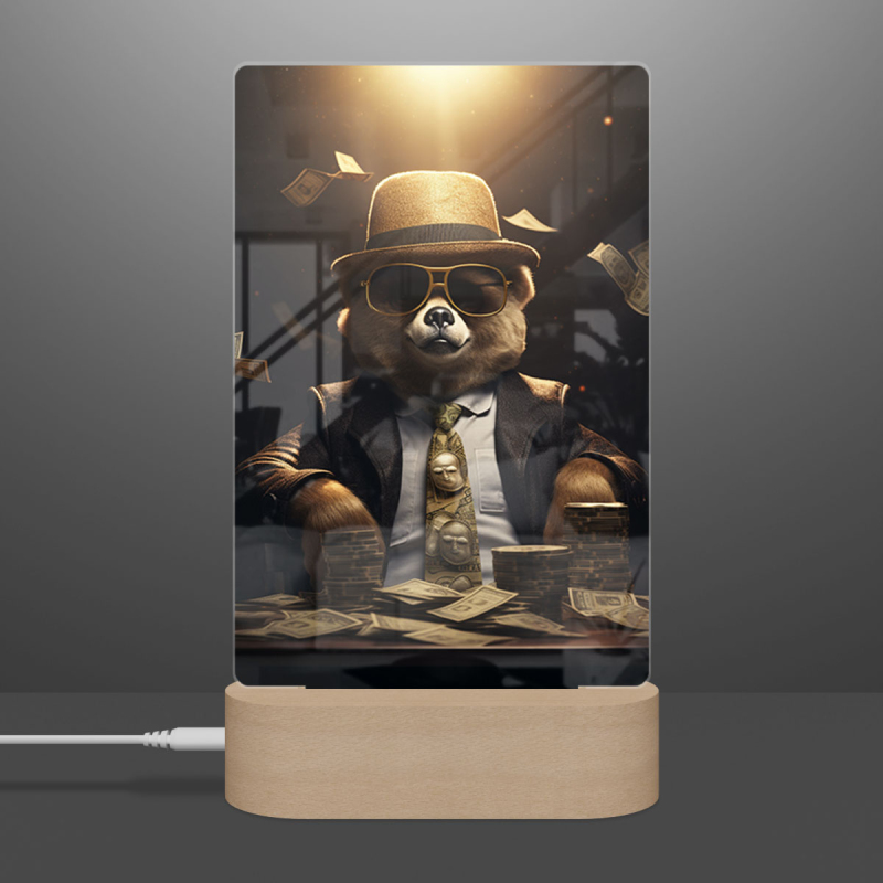 Součástí balení je akrylové sklo dle výběru, dřevěný RGB LED stojánek a napájecí USB kabel.