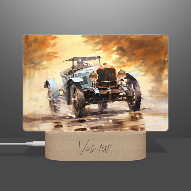 Součástí balení je akrylové sklo dle výběru, dřevěný RGB LED stojánek a napájecí USB kabel.