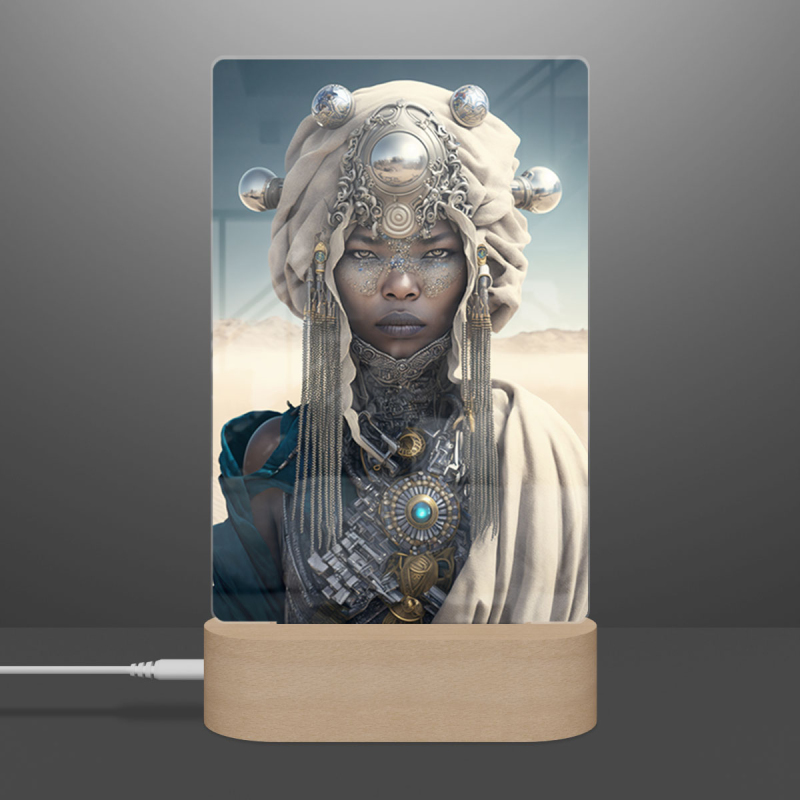 Součástí balení je akrylové sklo dle výběru, dřevěný RGB LED stojánek a napájecí USB kabel.