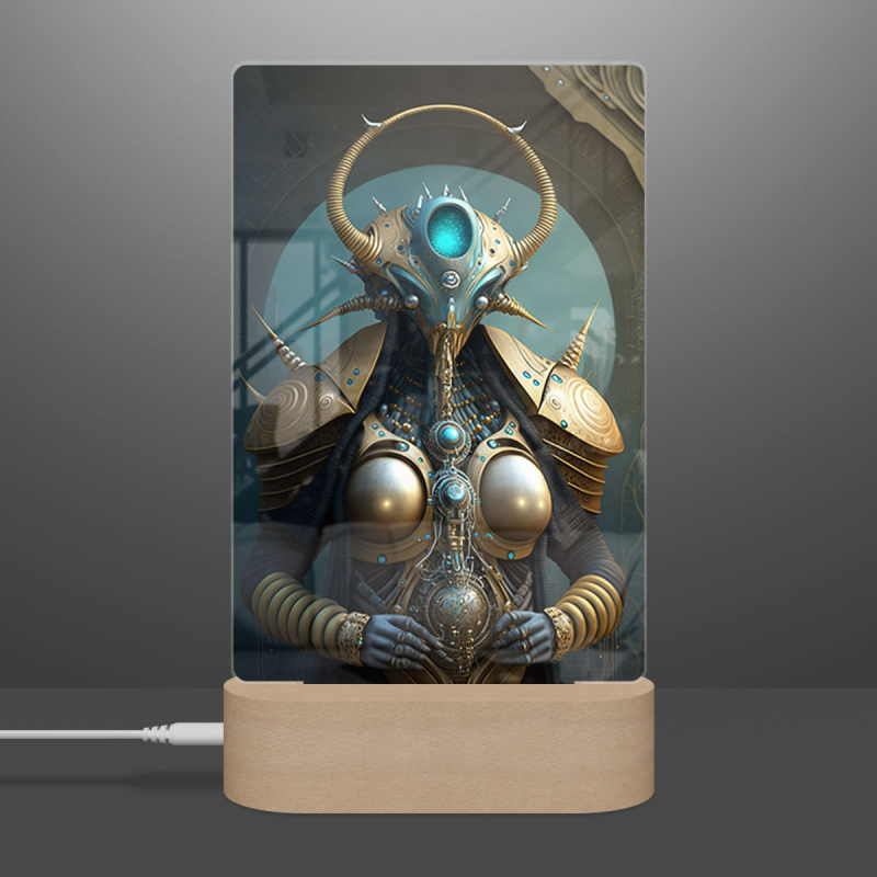 Součástí balení je akrylové sklo dle výběru, dřevěný RGB LED stojánek a napájecí USB kabel.