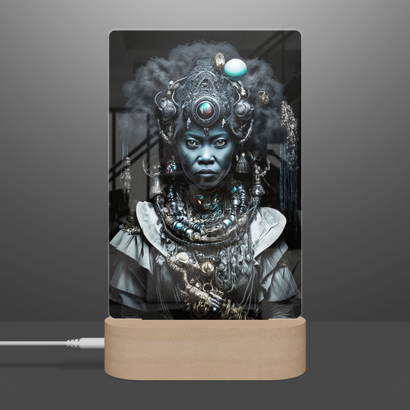 Součástí balení je akrylové sklo dle výběru, dřevěný RGB LED stojánek a napájecí USB kabel.