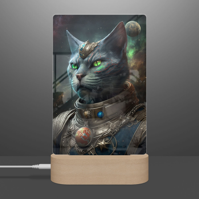 Součástí balení je akrylové sklo dle výběru, dřevěný RGB LED stojánek a napájecí USB kabel.