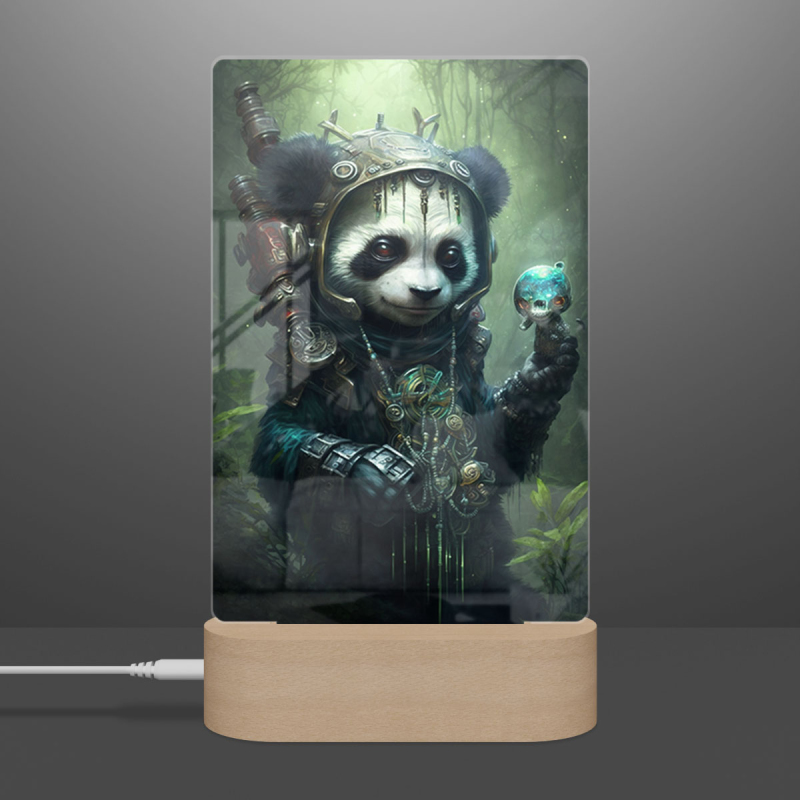 Součástí balení je akrylové sklo dle výběru, dřevěný RGB LED stojánek a napájecí USB kabel.