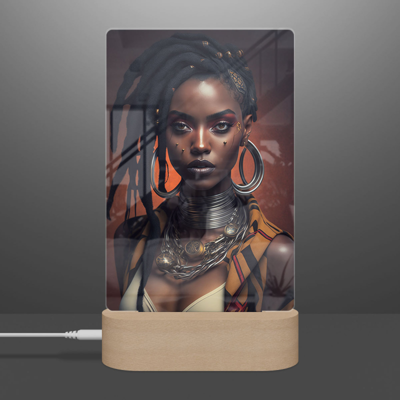 Součástí balení je akrylové sklo dle výběru, dřevěný RGB LED stojánek a napájecí USB kabel.