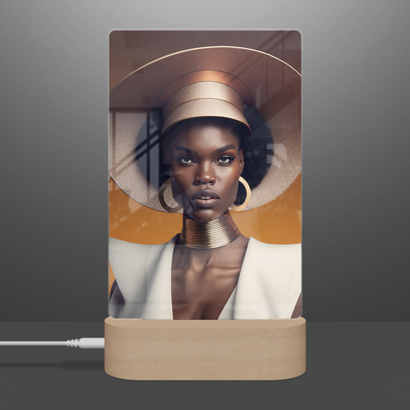 Součástí balení je akrylové sklo dle výběru, dřevěný RGB LED stojánek a napájecí USB kabel.