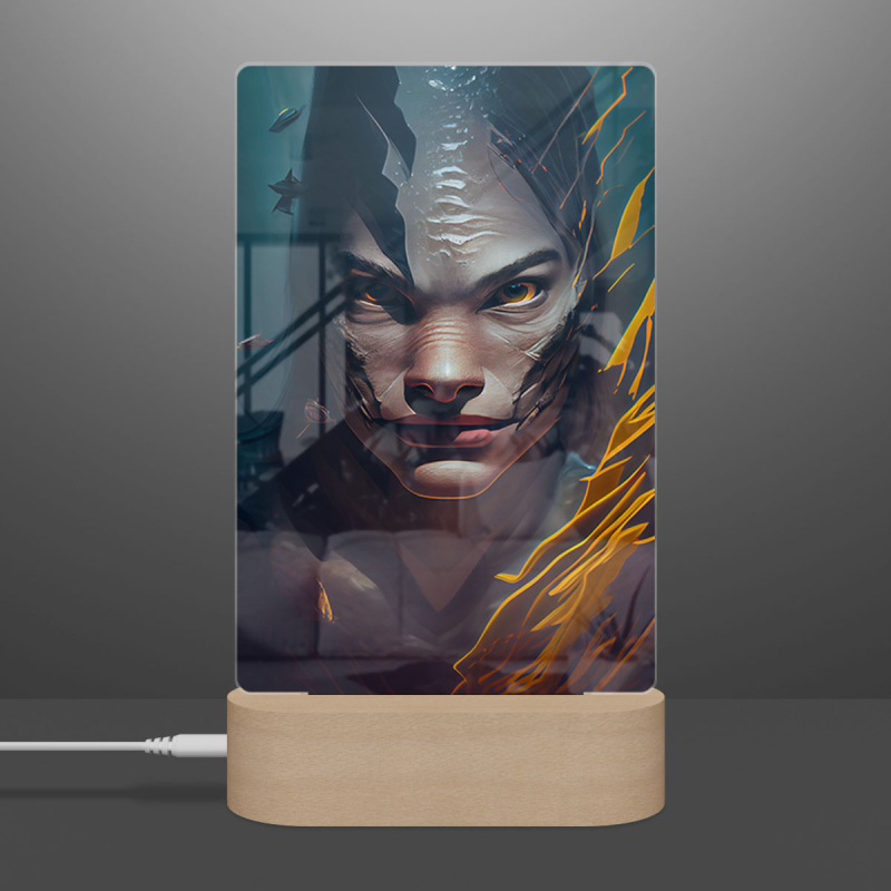 Součástí balení je akrylové sklo dle výběru, dřevěný RGB LED stojánek a napájecí USB kabel.