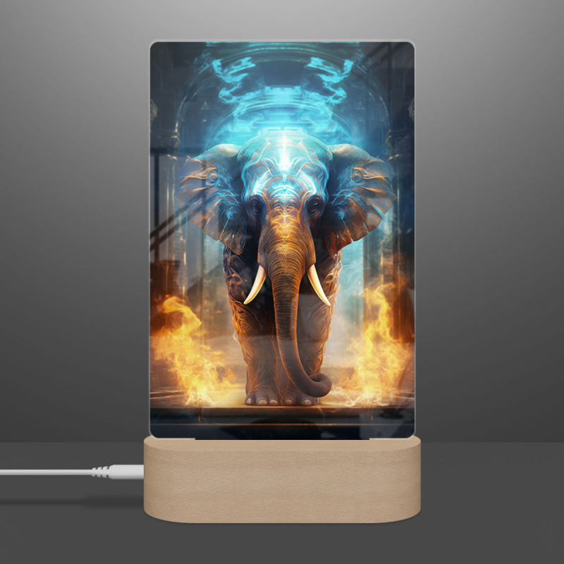 Součástí balení je akrylové sklo dle výběru, dřevěný RGB LED stojánek a napájecí USB kabel.