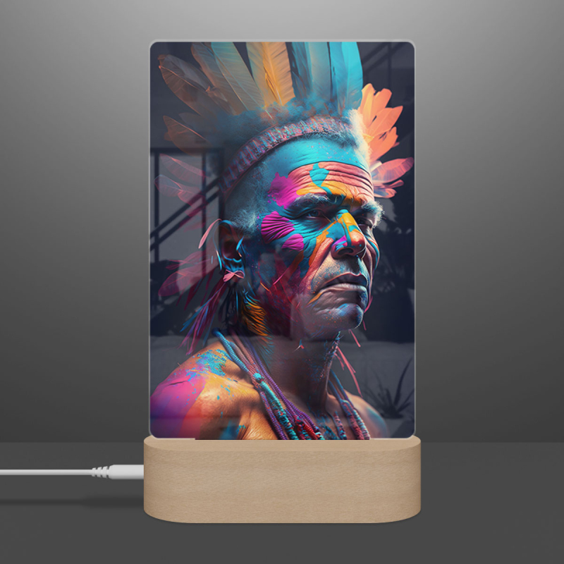 Součástí balení je akrylové sklo dle výběru, dřevěný RGB LED stojánek a napájecí USB kabel.