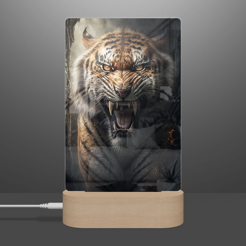 Součástí balení je akrylové sklo dle výběru, dřevěný RGB LED stojánek a napájecí USB kabel.