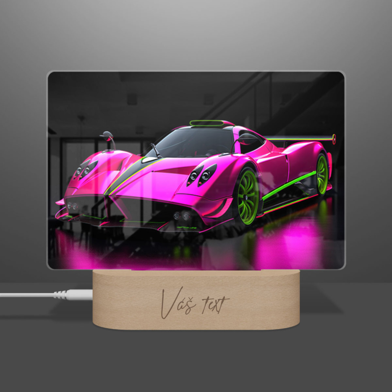 Součástí balení je akrylové sklo dle výběru, dřevěný RGB LED stojánek a napájecí USB kabel.