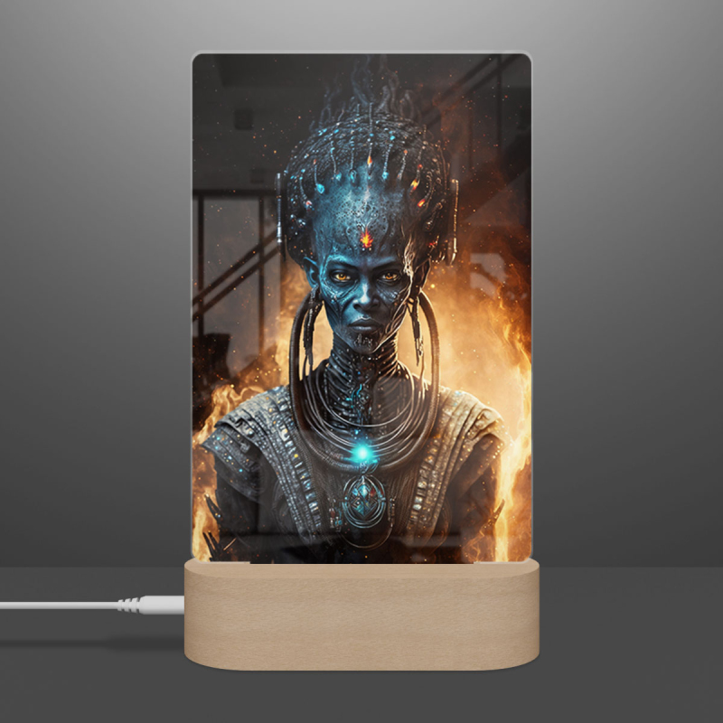Součástí balení je akrylové sklo dle výběru, dřevěný RGB LED stojánek a napájecí USB kabel.