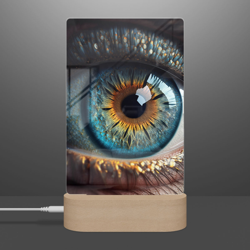 Součástí balení je akrylové sklo dle výběru, dřevěný RGB LED stojánek a napájecí USB kabel.