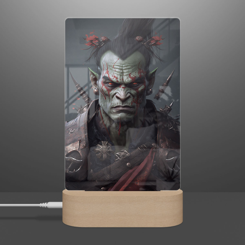 Součástí balení je akrylové sklo dle výběru, dřevěný RGB LED stojánek a napájecí USB kabel.