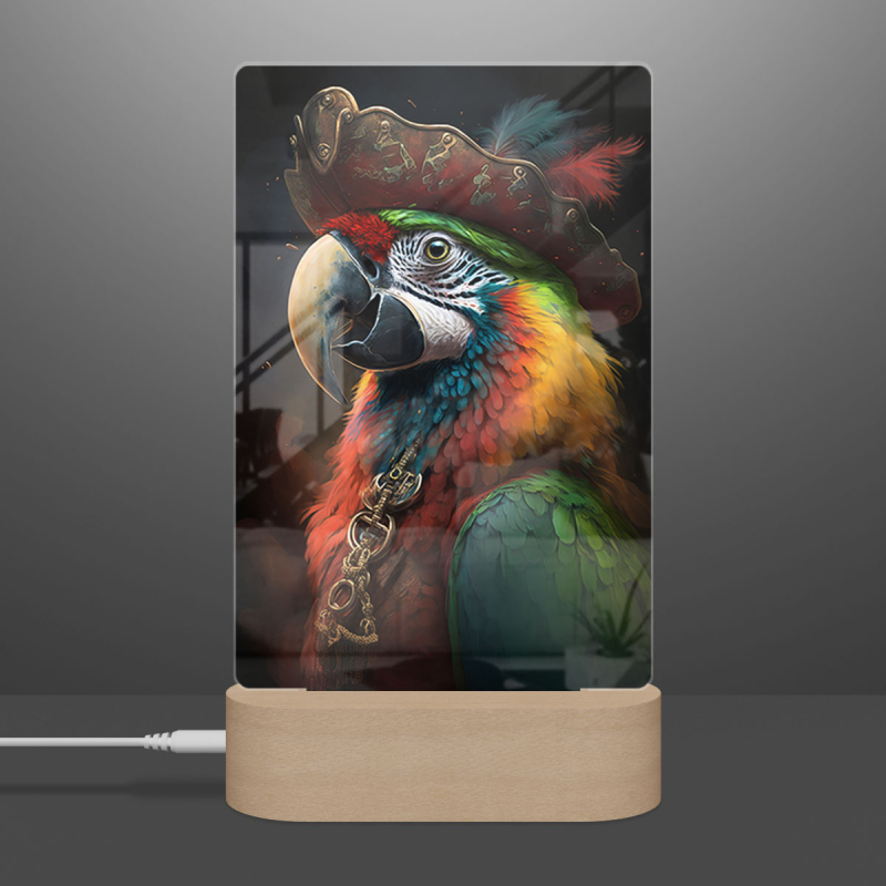 Součástí balení je akrylové sklo dle výběru, dřevěný RGB LED stojánek a napájecí USB kabel.