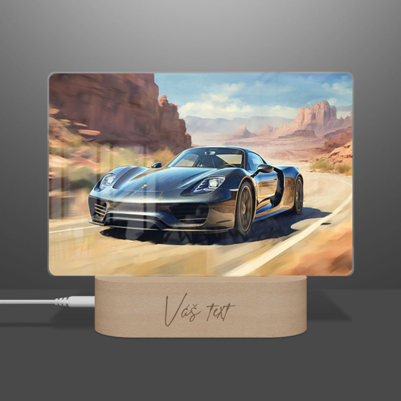 Součástí balení je akrylové sklo dle výběru, dřevěný RGB LED stojánek a napájecí USB kabel.