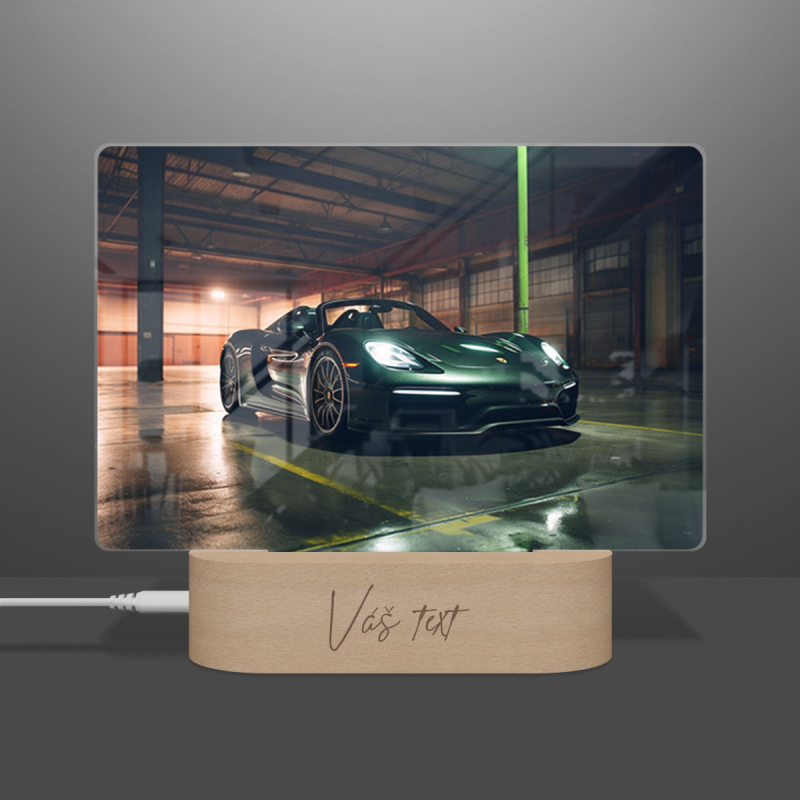 Součástí balení je akrylové sklo dle výběru, dřevěný RGB LED stojánek a napájecí USB kabel.