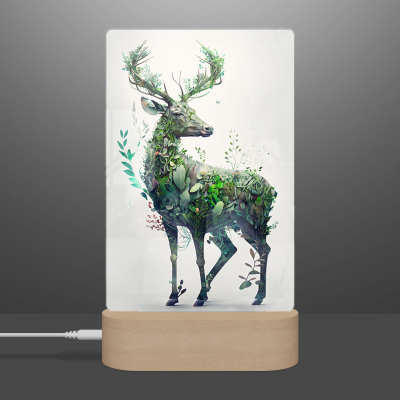 Součástí balení je akrylové sklo dle výběru, dřevěný RGB LED stojánek a napájecí USB kabel.