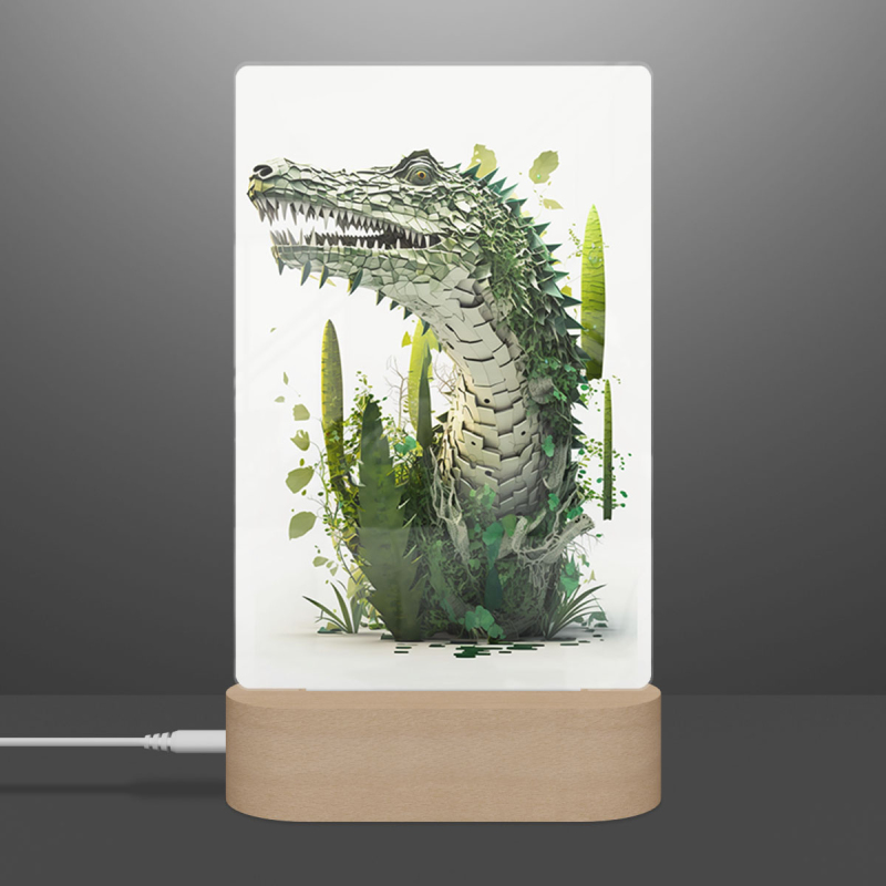 Součástí balení je akrylové sklo dle výběru, dřevěný RGB LED stojánek a napájecí USB kabel.