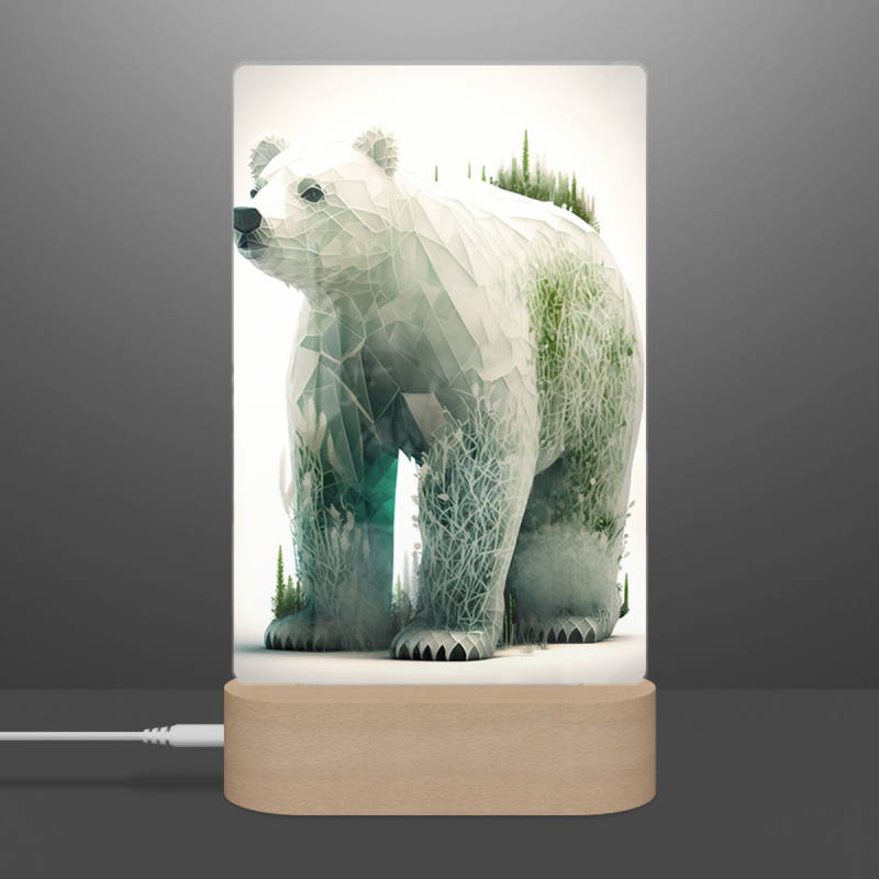 Součástí balení je akrylové sklo dle výběru, dřevěný RGB LED stojánek a napájecí USB kabel.