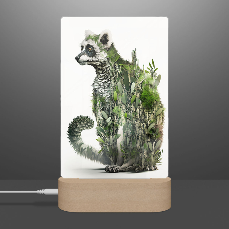 Součástí balení je akrylové sklo dle výběru, dřevěný RGB LED stojánek a napájecí USB kabel.