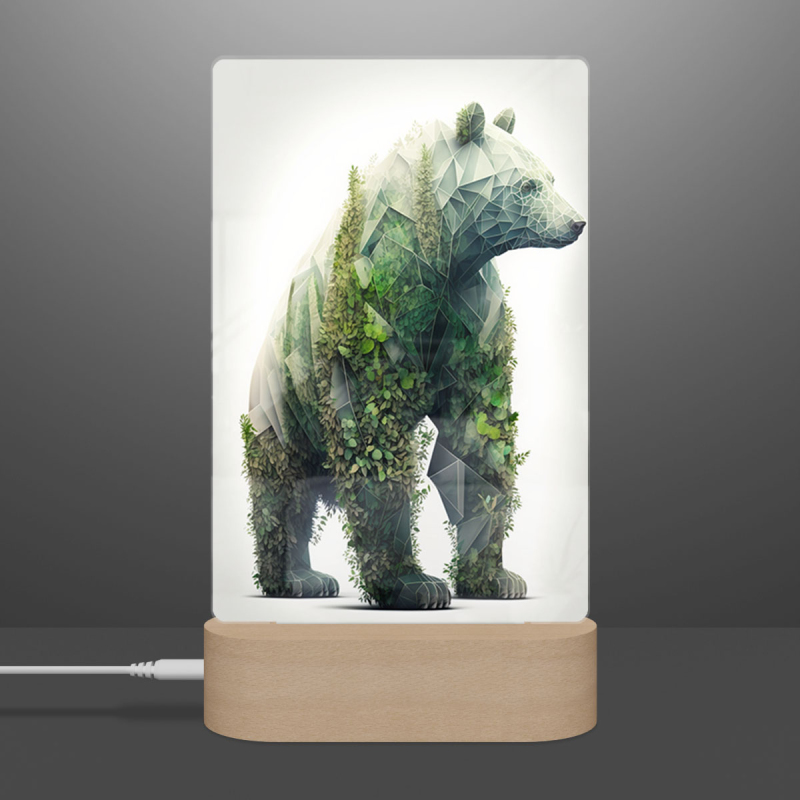 Součástí balení je akrylové sklo dle výběru, dřevěný RGB LED stojánek a napájecí USB kabel.