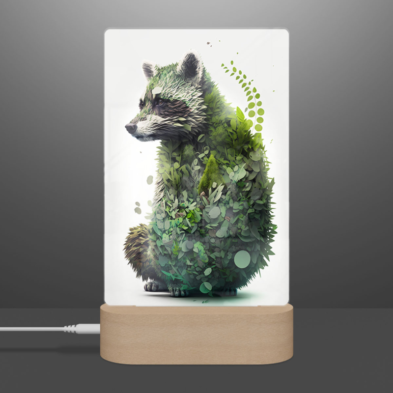 Součástí balení je akrylové sklo dle výběru, dřevěný RGB LED stojánek a napájecí USB kabel.