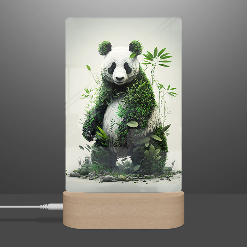 Součástí balení je akrylové sklo dle výběru, dřevěný RGB LED stojánek a napájecí USB kabel.