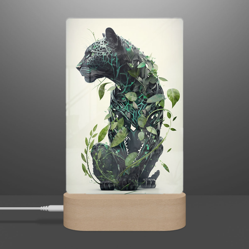 Součástí balení je akrylové sklo dle výběru, dřevěný RGB LED stojánek a napájecí USB kabel.