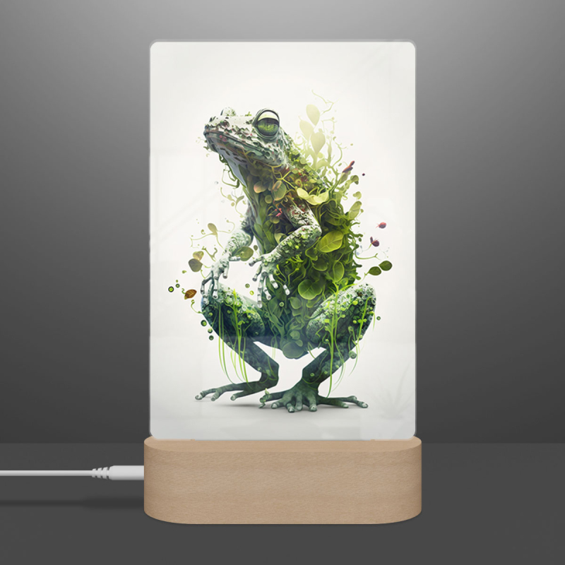 Součástí balení je akrylové sklo dle výběru, dřevěný RGB LED stojánek a napájecí USB kabel.
