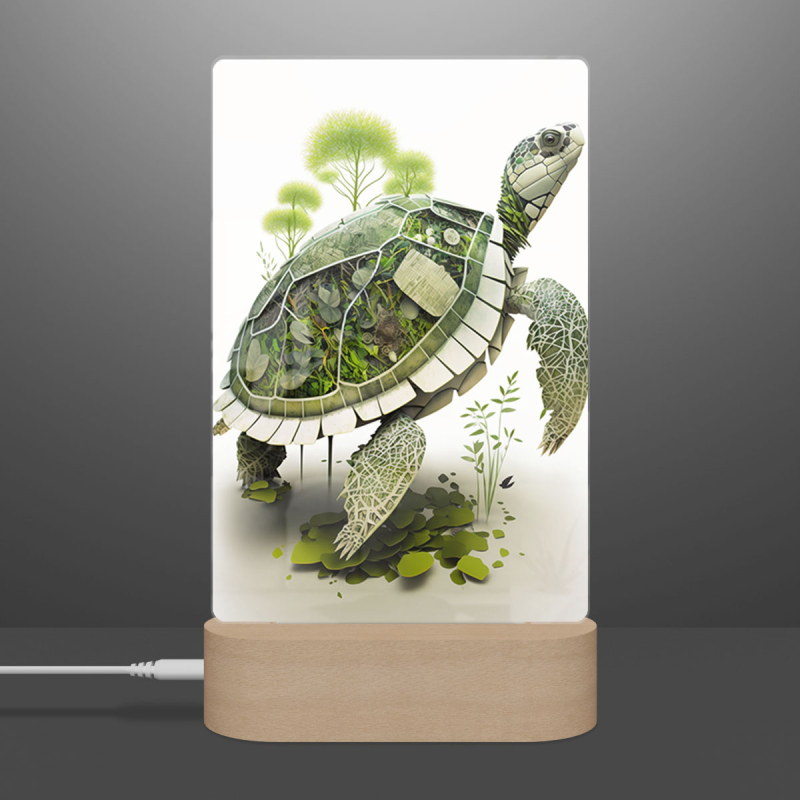 Součástí balení je akrylové sklo dle výběru, dřevěný RGB LED stojánek a napájecí USB kabel.