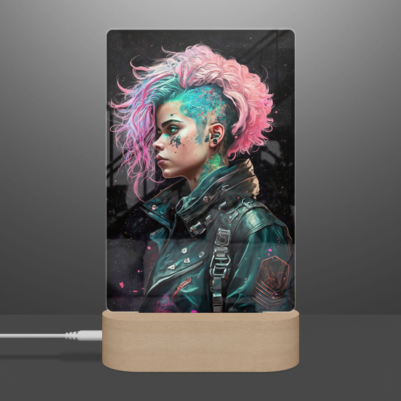 Součástí balení je akrylové sklo dle výběru, dřevěný RGB LED stojánek a napájecí USB kabel.