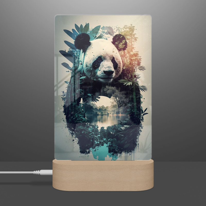 Součástí balení je akrylové sklo dle výběru, dřevěný RGB LED stojánek a napájecí USB kabel.