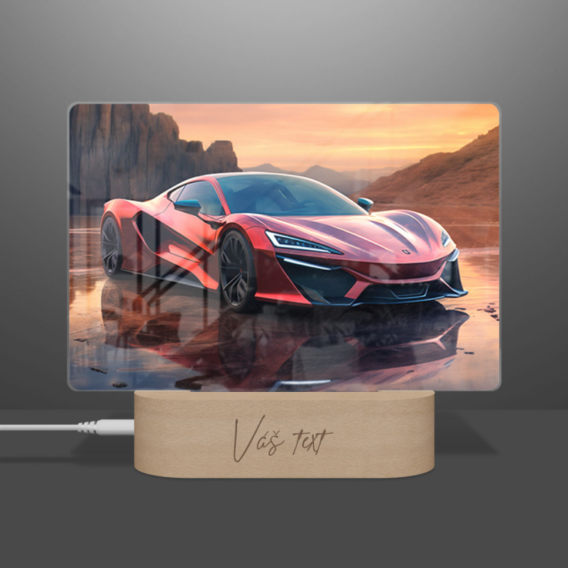 Součástí balení je akrylové sklo dle výběru, dřevěný RGB LED stojánek a napájecí USB kabel.