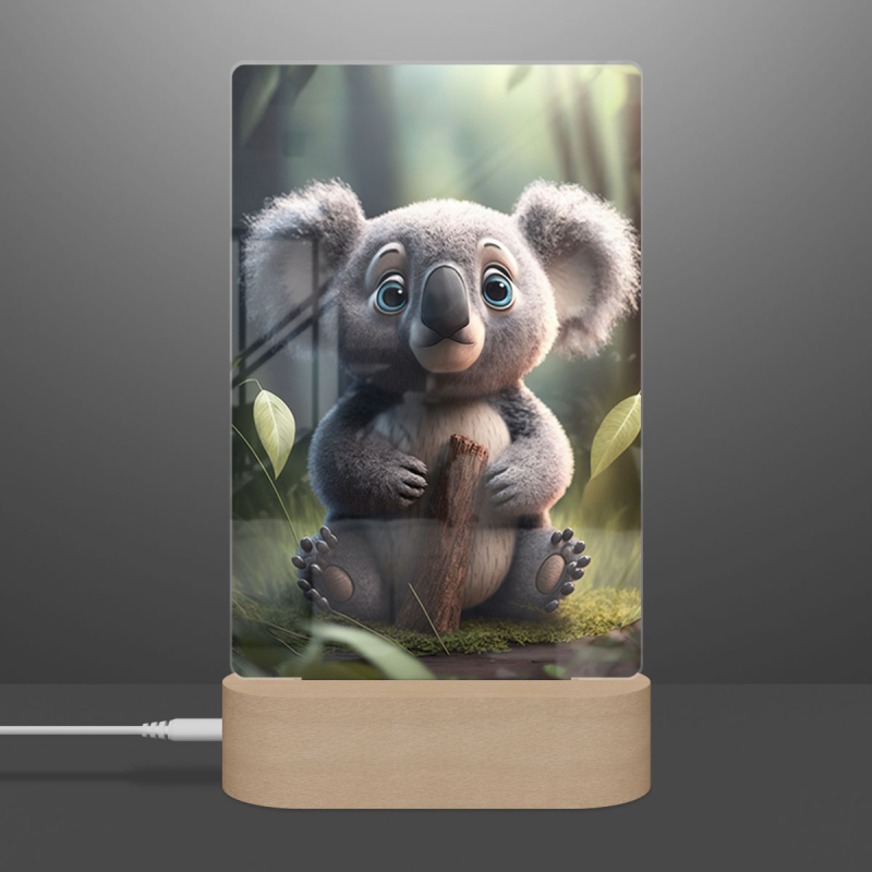 Součástí balení je akrylové sklo dle výběru, dřevěný RGB LED stojánek a napájecí USB kabel.