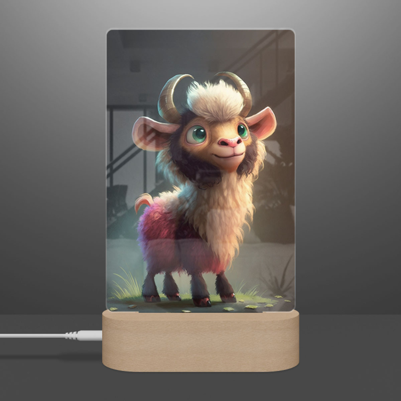 Součástí balení je akrylové sklo dle výběru, dřevěný RGB LED stojánek a napájecí USB kabel.