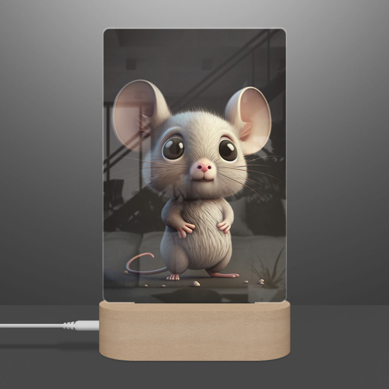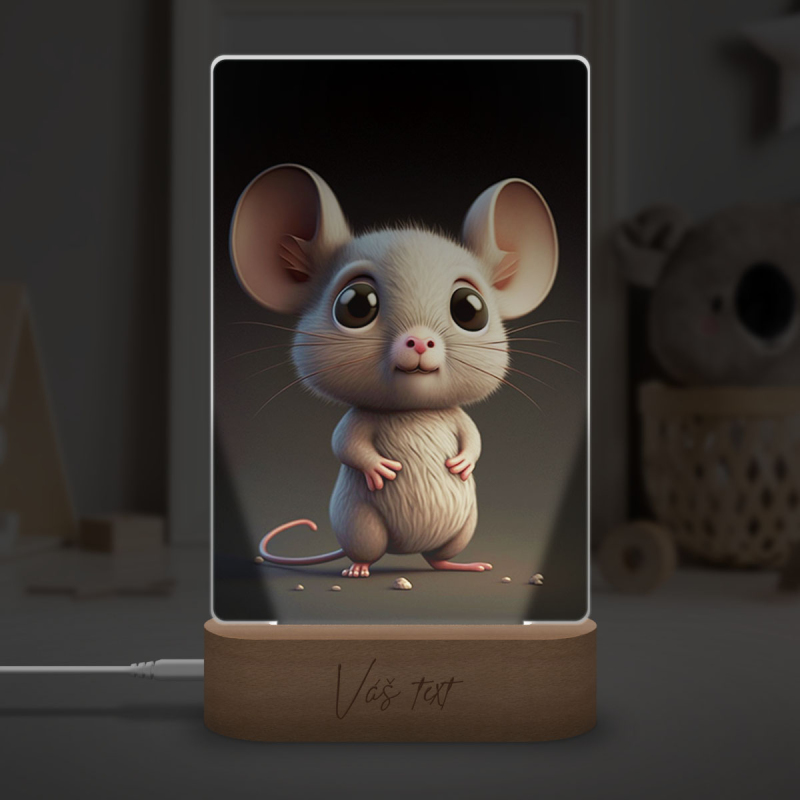 Součástí balení je akrylové sklo dle výběru, dřevěný RGB LED stojánek a napájecí USB kabel.