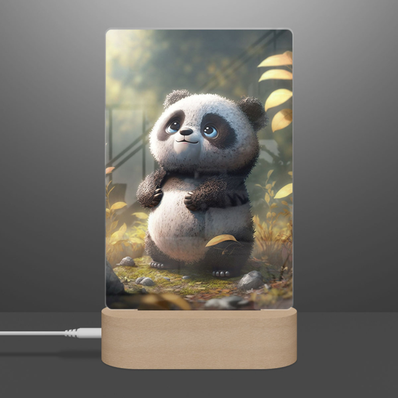 Součástí balení je akrylové sklo dle výběru, dřevěný RGB LED stojánek a napájecí USB kabel.