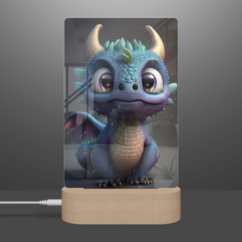 Součástí balení je akrylové sklo dle výběru, dřevěný RGB LED stojánek a napájecí USB kabel.