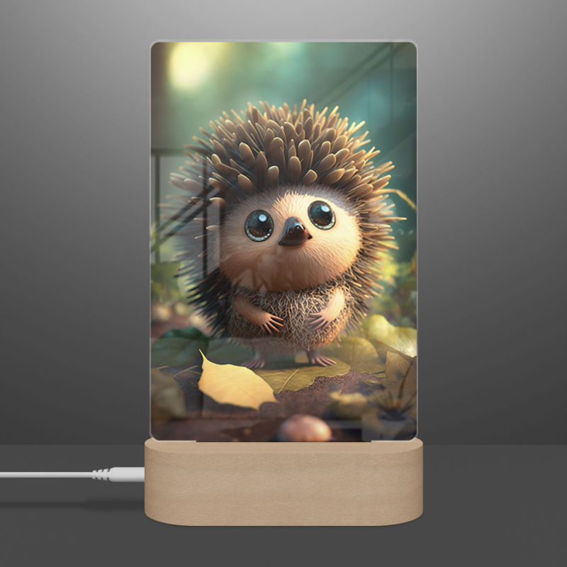 Součástí balení je akrylové sklo dle výběru, dřevěný RGB LED stojánek a napájecí USB kabel.