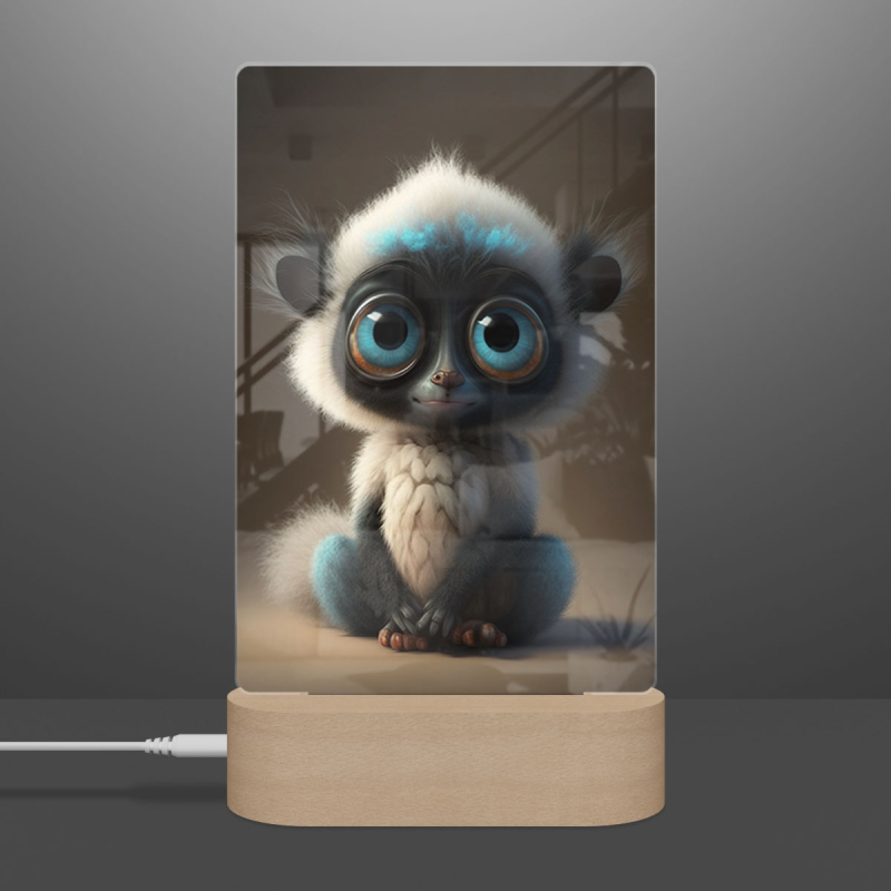 Součástí balení je akrylové sklo dle výběru, dřevěný RGB LED stojánek a napájecí USB kabel.