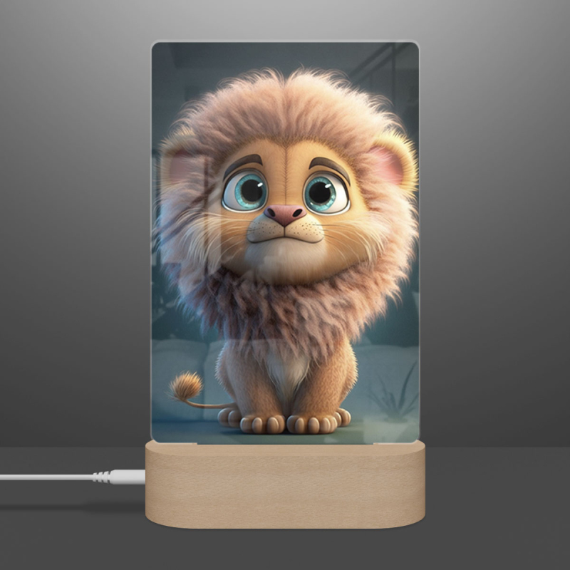 Součástí balení je akrylové sklo dle výběru, dřevěný RGB LED stojánek a napájecí USB kabel.